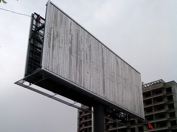 三面翻广告牌是由一组并排的三棱柱组成,三棱柱由特制铝型材制作,通过电机驱动所有的三棱柱围绕各自中心轴转动,利用三棱柱的三个侧面形成三幅画面。所以三面翻广告牌具有三倍表现的空间和视觉动感的优势。